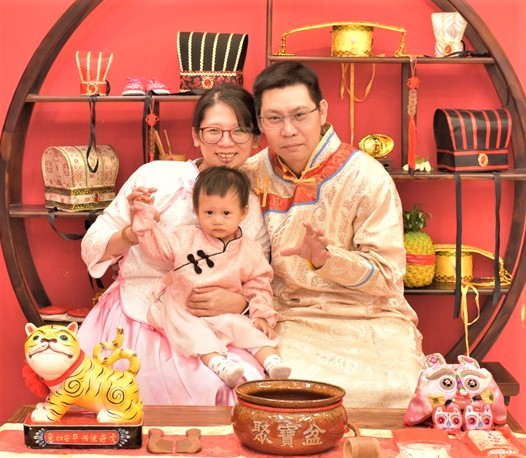 曾家,全家選擇(中國風與韓式風格古裝禮服)參加傳家嬰兒古禮抓周,活動與拍照紀念,中國風古裝禮服吉祥喜氣、象徵富貴、平安。韓式風格古裝禮服喜氣高雅、象徵富貴、福氣。2021/04/10