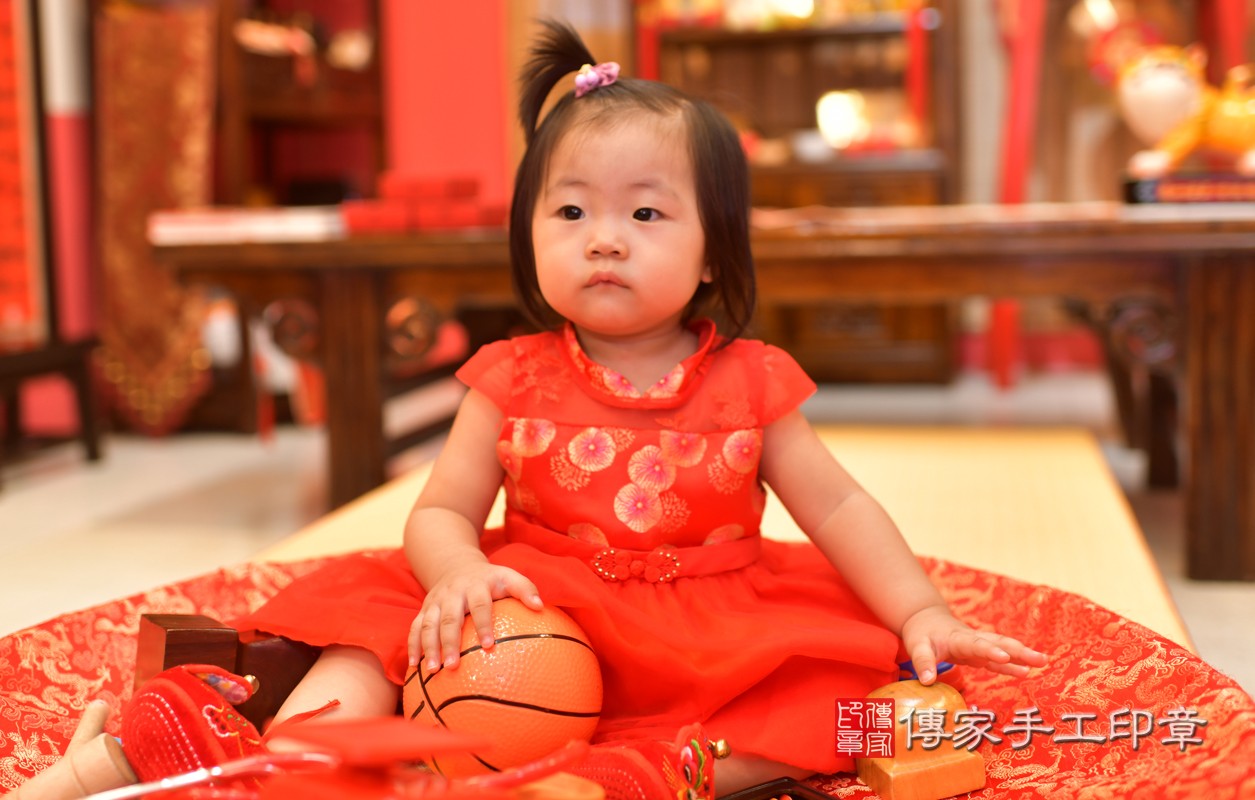 小孩禮服(女),黃寶寶參加傳家古禮抓周祝福拍照紀念。(中式風格)古裝禮服,可愛、吉祥喜氣、象徵富貴、平安。2020-07-22