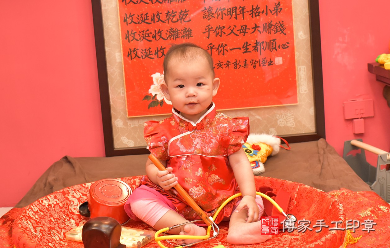 小孩禮服(女),羅寶寶參加傳家古禮抓周祝福拍照紀念。(中式風格)古裝禮服,可愛、吉祥喜氣、象徵富貴、平安。2020-07-12