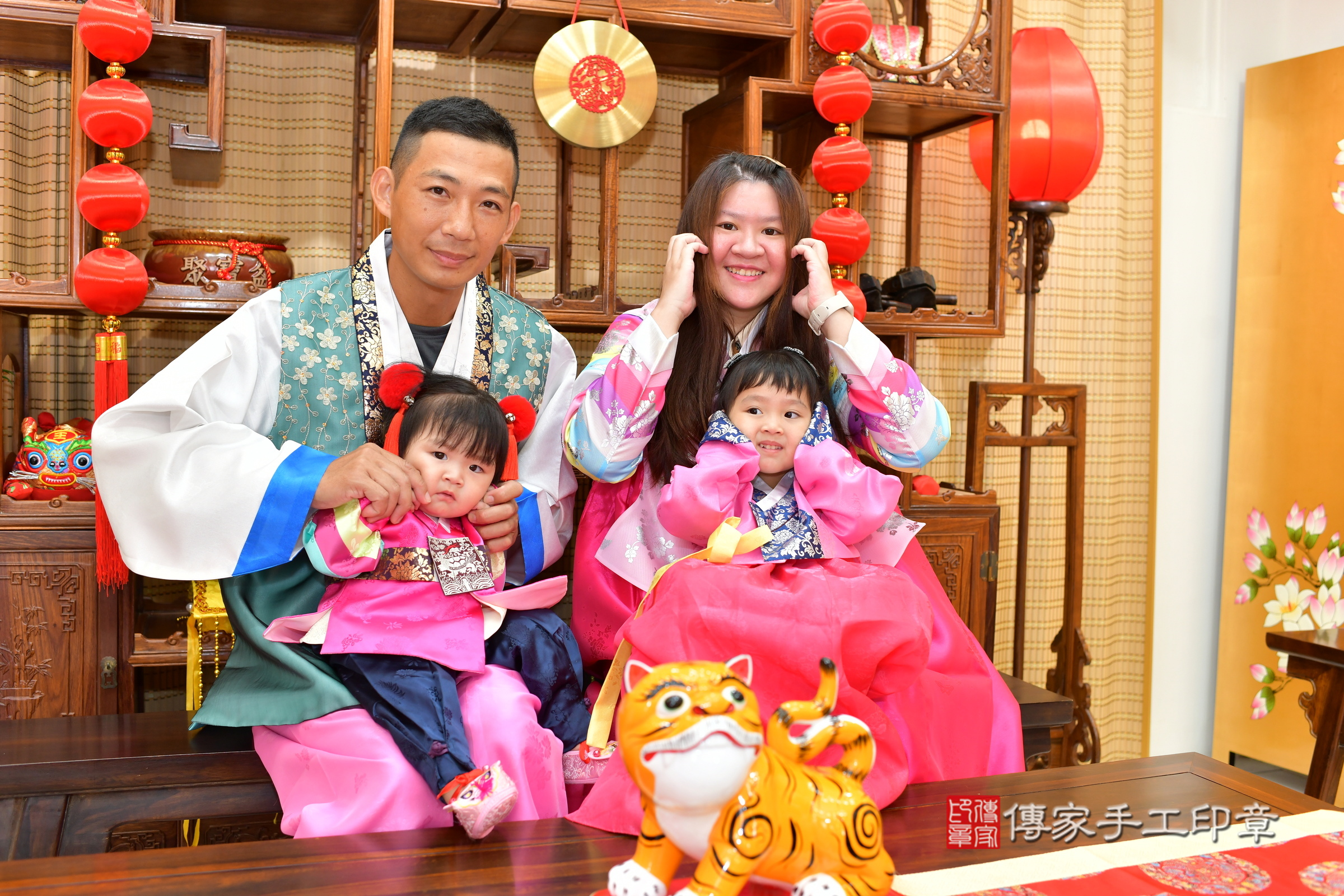 一家人穿著韓式古裝禮服,拍攝全家福合照,像在拍韓劇一樣,非常有紀念意義~