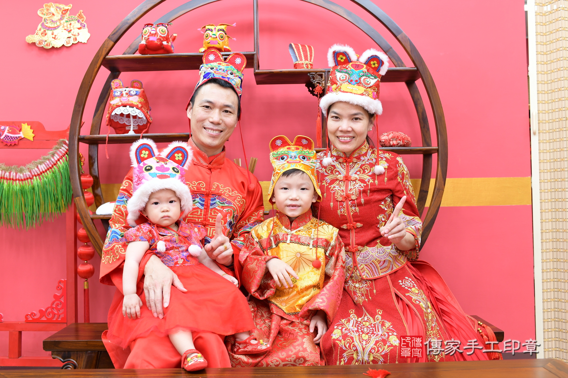 小荷寶寶抓周,成人與小孩古裝禮服照。地點:傳家「新北店」古禮會場