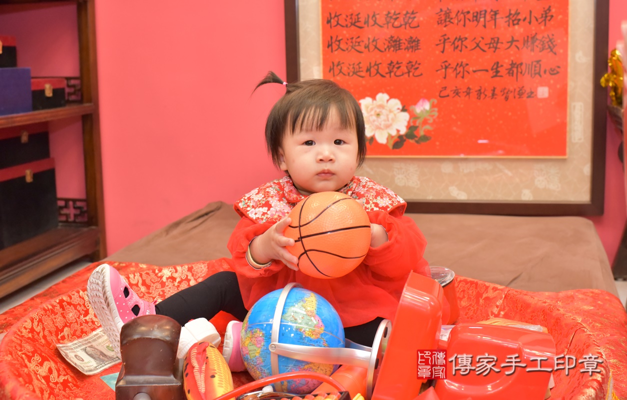 小孩禮服(女),李寶寶參加傳家古禮抓周祝福拍照紀念。(中式風格)古裝禮服,可愛、吉祥喜氣、象徵富貴、平安。2021-02-20