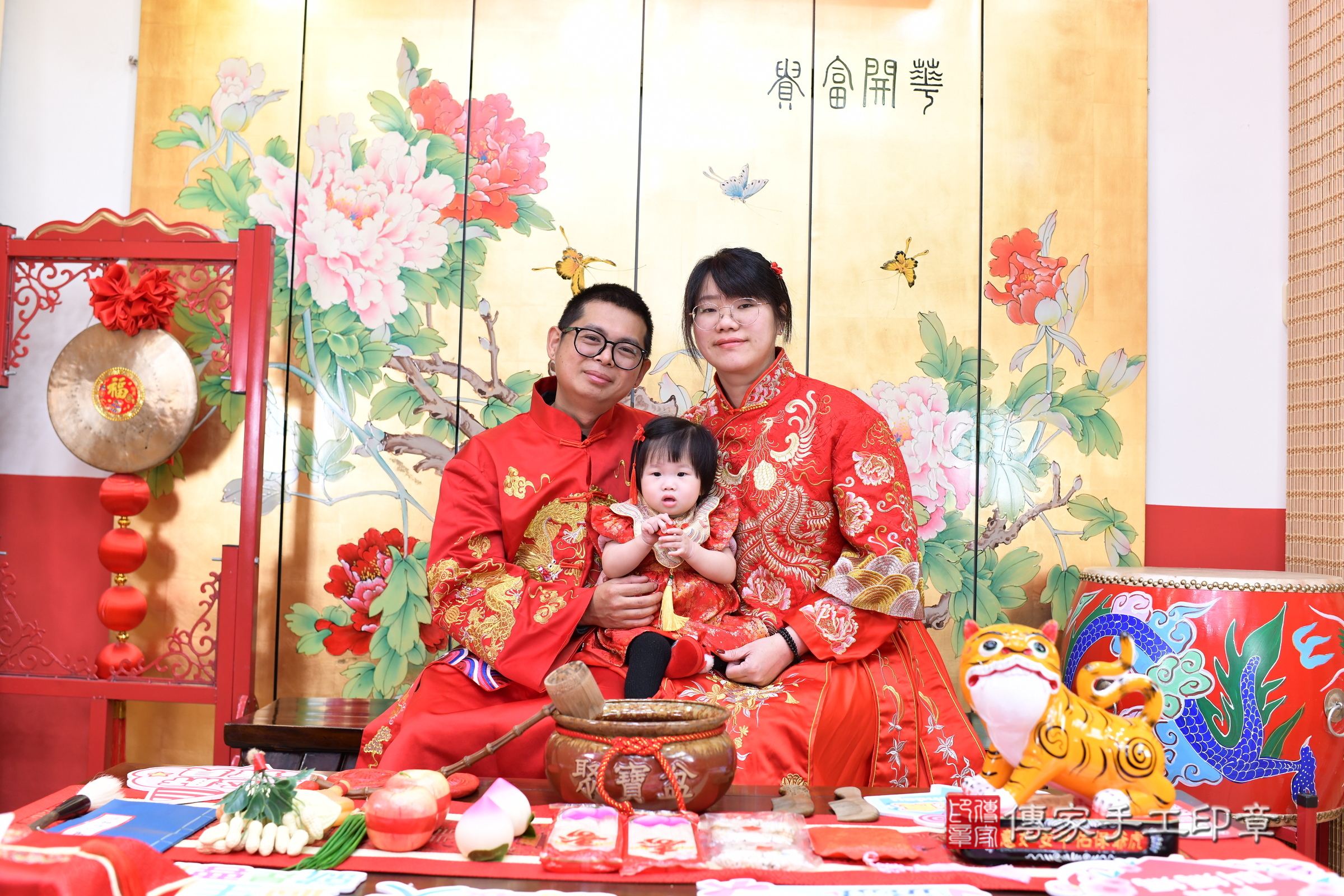 玎玎寶貝抓周,成人與小孩古裝禮服照。地點:傳家「新竹店」古禮會場