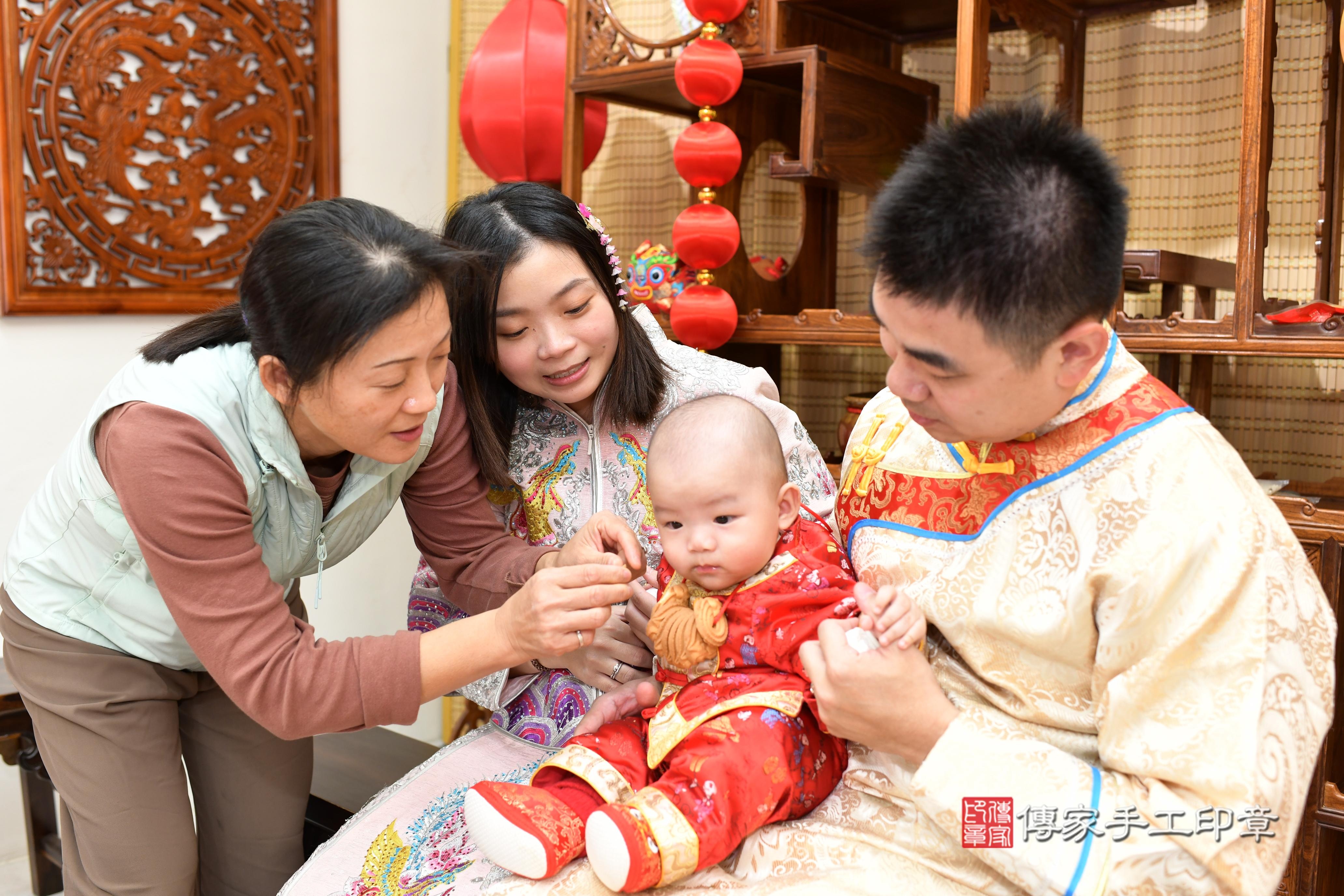 爸爸和媽媽選擇在傳家台南店傳家古禮會場為筌筌寶貝舉辦收涎&剃頭儀式,
