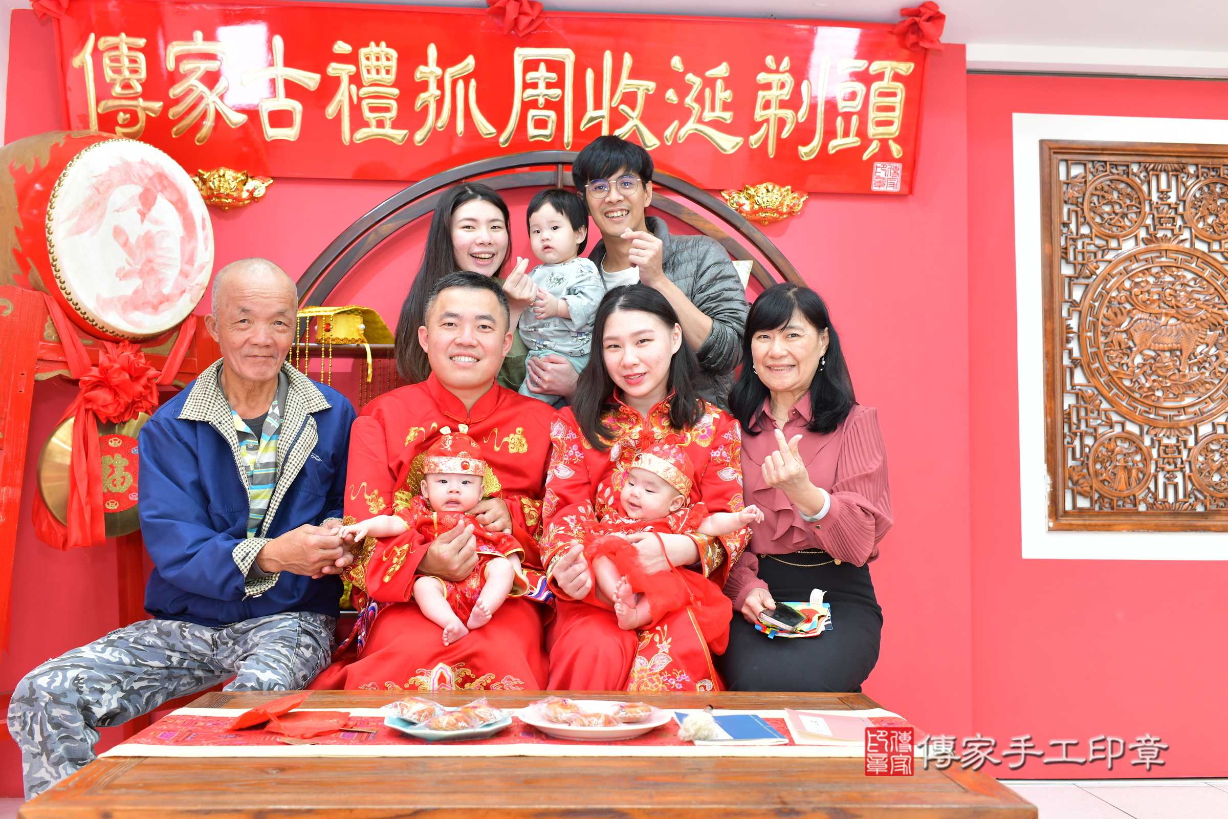 本次儀式的主角是暟暟寶寶和澄澄寶寶(龍鳳胎),全家大小一起完成了這場儀式,
