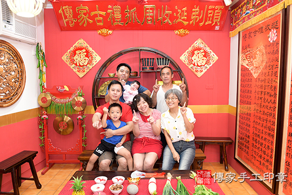 傳家手工印章(臍帶章、胎毛筆)【到中國風會場】免費剃胎毛,範例二,讓爸爸媽媽更容易了解到會場參加剃頭的優勢與服務內容。吉祥喜氣古禮會場,穿古禮服,進行嬰兒剃頭,古禮祝福儀式及寶寶全家福拍照,歡迎瀏覽參考。傳家用心服務每一個寶貝,祝福陳寶貝健康平安長大,孝順爸媽。