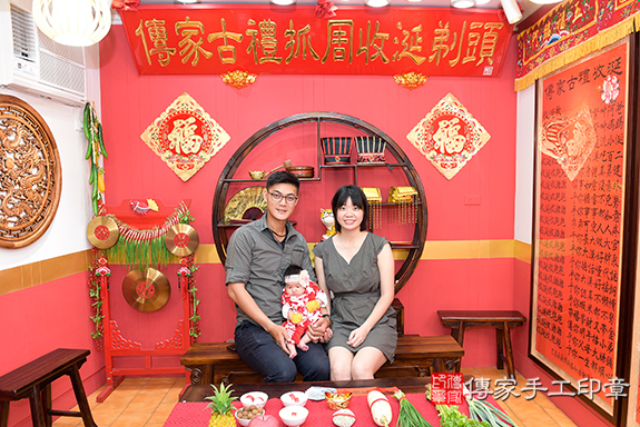 傳家手工印章(臍帶章、胎毛筆)【到中國風會場】免費剃胎毛,範例二,讓爸爸媽媽更容易了解到會場參加剃頭的優勢與服務內容。吉祥喜氣古禮會場,穿古禮服,進行嬰兒剃頭,古禮祝福儀式及寶寶全家福拍照,歡迎瀏覽參考。傳家用心服務每一個寶貝,祝福陳寶貝健康平安長大,孝順爸媽。