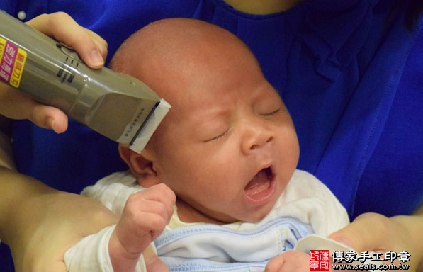寶寶要開始剃頭囉, 剃頭象徵今天從頭開始、圓圓滿滿喔~ 傳家印章有專業的剃頭儀式和剃頭人員,用心為寶貝進行滿月剃頭剃胎毛儀式和祝福吉祥話。