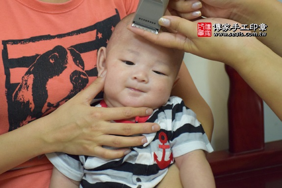 寶寶要開始剃頭囉, 剃頭象徵今天從頭開始、圓圓滿滿喔~ 傳家印章有專業的剃頭儀式和剃頭人員,用心為寶貝進行滿月剃頭剃胎毛儀式和祝福吉祥話。