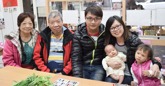 在嬰兒剃頭剃胎毛的儀式開始前,陳寶寶跟親愛的爸媽已經穿好古裝禮服,進行溫馨全家福拍照。