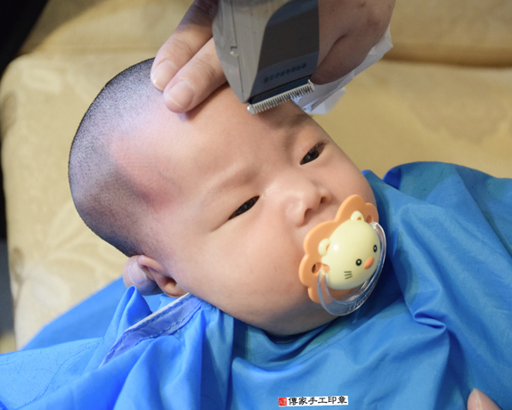 寶寶要開始剃頭囉, 剃頭象徵今天從頭開始、圓圓滿滿喔~ 傳家印章有專業的剃頭儀式和剃頭人員,用心為寶貝進行滿月剃頭剃胎毛儀式和祝福吉祥話。