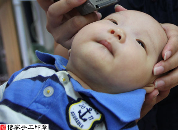 寶寶要開始剃頭囉, 剃頭象徵今天從頭開始、圓圓滿滿喔~ 傳家印章有專業的剃頭儀式和剃頭人員,用心為寶貝進行滿月剃頭剃胎毛儀式和祝福吉祥話。