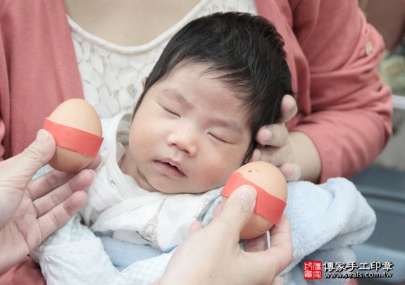 煮熟雞蛋2個「代表的含意:寶寶生臉蛋英俊、女生臉蛋美麗漂亮」。