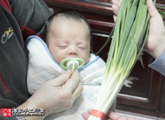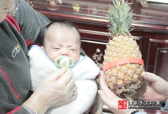 今天:2016年的01月12日 天氣:晴 剃頭小組:小鈺&古爸 爸爸媽媽在事先就跟我們預約囉~~ 這是專程為可愛的鄭寶寶準備的豐盛十禮唷! 為鄭寶寶準備煮熟的圓的鴨蛋兩顆。 煮熟鴨蛋2個 「代表的含意:嬰兒的身形跟鴨蛋的形狀一樣、身材健美」。 讓寶寶長大頭好壯壯,當個陽光美男喔! 為鄭寶寶準備的圓的石頭1個。 石頭「代表的含意:頭殼堅硬跟石頭一樣、身體硬朗、有膽量、勇敢」 讓寶寶長大有膽量有膽識,要做大事唷! 為鄭寶寶準備一碗滿滿的米。 米。「代表的含意:一生有飯吃,豐衣足食,不愁吃穿」 讓寶寶長大都不愁吃穿唷! ~ 為鄭寶寶準備一大包桂圓。 桂圓「代表的含意:桂圓的台語發音,跟「貴人」一樣,象徵孩子有貴人相助」 讓寶寶身邊都環繞著貴人呦~~ 為鄭寶寶準備一顆橘子。 橘子「代表的含意:大吉大利」 讓寶寶大吉大利~事事都順心唷! 為鄭寶寶準備一顆蘋果。 蘋果「代表的含意:平平安安」 讓寶寶健健康康平安長大唷! 為鄭寶寶準備漂亮的蔥一把。 蔥:象徵「孩子聰明會念書」。 爸爸媽媽我是一個聰明的小孩以後考試都100分喔~~ 為鄭寶寶準備的芹菜一把。 芹菜一小把。「代表的含意:勤勞、積極、努力向上」。 寶寶長大要幫爸爸媽媽分擔經濟,分擔家計喔!! 為鄭寶寶準備的韭菜一把。 韭菜一小把。「代表的含意:長壽、長久、健康吃120歲」。 讓寶寶長命百歲唷! 為鄭寶寶準備的大蘿蔔。 蘿蔔「代表的含意:蘿蔔就是好彩頭,象徵孩子一生好運源源不絕」 讓寶寶一輩子都可以好運滿滿喔! 為鄭寶寶準備的鳳梨。 鳳梨「代表的含意:鳳梨就是旺旺來,象徵孩子一生好運旺旺來」 讓寶寶一輩子都可以一路旺到底喔! 為鄭寶寶準備的1000元大鈔,五帝錢和紅包袋。 紅包袋裡面裝千元大鈔:象徵「孩子能賺大錢」, 五帝錢:象徵「代表盛世吉祥和富貴」。 爸爸媽媽我長大一定會賺很多很多的錢錢讓你們享福喔! 鄭寶寶要開始剃頭囉, 剃頭象徵今天從頭開始、圓圓滿滿喔。 爸爸媽媽你看阿姨幫我剃頭我很勇敢喔~ 頭皮好涼唷! 阿姨幫你剃眉毛幫你把霉運通通都趕跑~ 鄭寶寶滿月剃髮儀式完成囉~ 傳家手工印章祝福鄭寶寶平安健康、聰明長大! 也祝福鄭寶寶全家平安健康喜樂唷~ 還有許多全家福和剃髮花絮照片,就交由爸爸媽媽自己收藏和分享囉, 傳家不會公開寶寶的名字和資料,大家就看到這邊就好囉! 以上照片由鄭寶寶家長同意公開使用,版權所有。 歡迎爸爸媽媽來電預約寶寶剃髮服務 (包含專業拍照整個過程), 傳家會用心為您的孩子服務和祝福。 免費到府嬰兒胎毛理髮:製作臍帶印章、胎毛筆、嬰兒三寶。 歡迎家長來電預約。 台北店:新北市永和區永貞路129號。聯絡電話:02-2922-6422。 (服務台北、新北、基隆、桃園、宜蘭等地區) 新竹店:新竹市經國路三段71號。聯絡電話:03-530-4066。 (服務新竹、苗栗、新竹科學園區、苗栗科學園區等五大科學園區) 台中店:台中市北區忠明路502-5號。聯絡電話:04-2202-3030。 (服務台中以南、彰化、南投、雲林、嘉義、台南、高雄、屏東等地區)