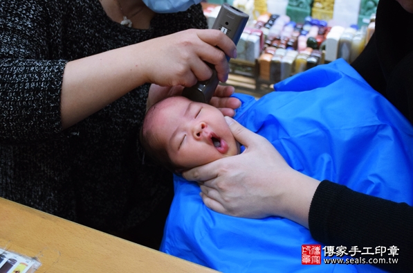 李寶寶(新北永和區)-製作胎毛筆、臍帶章、嬰兒三寶滿月來店理髮活動紀錄 2016.03.10