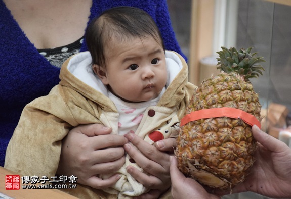 今天:2016年的03月24日 天氣:晴 剃頭小組:小鈺&小欣 ︿︿ 在儀式開始前先跟愛我的爸爸媽媽來一張溫馨美滿又快樂的全家福 為林寶寶準備煮熟的圓的雞蛋兩顆。 煮熟雞蛋2個「代表的含意:寶寶生臉蛋英俊、女生臉蛋美麗漂亮」。 讓寶寶的臉蛋Q彈,是個氣質大美人喔~ 為林寶寶準備煮熟的圓的鴨蛋兩顆。 煮熟鴨蛋2個 「代表的含意:嬰兒的身形跟鴨蛋的形狀一樣、身材健美」。 讓寶寶長大頭好壯壯,身姿優美! 為林寶寶準備的圓的石頭1個。 石頭「代表的含意:頭殼堅硬跟石頭一樣、身體硬朗、有膽量、勇敢」 為林寶寶準備一碗滿滿的米。 米。「代表的含意:一生有飯吃,豐衣足食,不愁吃穿」 讓寶寶長大都不愁吃穿唷! ~ 為林寶寶準備一大碗桂圓。 蘋果「代表的含意:平平安安」 讓寶寶健健康康平安長大唷! 為林寶寶準備的韭菜一把。 韭菜一小把。「代表的含意:長壽、長久、健康吃120歲」。 讓寶寶長命百歲唷! 芹菜一小把。「代表的含意:勤勞、積極、努力向上」。 寶寶長大要幫爸爸媽媽分擔經濟,分擔家計喔!! 為林寶寶準備漂亮的蔥一把。 蔥:象徵「孩子聰明會念書」。 爸爸媽媽我是一個聰明的小孩以後考試都100分喔~~ 為林寶寶準備的大蘿蔔。 鳳梨「代表的含意:鳳梨就是旺旺來,象徵孩子一生好運旺旺來」 讓寶寶一輩子都可以一路旺到底喔! 為林寶寶準備的1000元大鈔,五帝錢和紅包袋。 紅包袋裡面裝千元大鈔:象徵「孩子能賺大錢」, 五帝錢:象徵「代表盛世吉祥和富貴」。 爸爸媽媽我長大一定會賺很多很多的錢錢讓你們享福喔! 林寶寶要開始剃頭囉, 剃頭象徵今天從頭開始、圓圓滿滿喔。 爸爸媽媽阿姨剃頭像按摩一樣好涼好舒服 爸爸媽媽我的最新造型是不是粉可愛啊! 傳家手工印章祝福林寶寶平安健康、聰明長大! 也祝福林寶寶全家平安健康喜樂唷~ 還有許多全家福和剃髮花絮照片,就交由爸爸媽媽自己收藏和分享囉, 傳家不會公開寶寶的名字和資料,大家就看到這邊就好囉! 以上照片由林寶寶家長同意公開使用,版權所有。 歡迎爸爸媽媽來電預約寶寶剃髮服務 (包含專業拍照整個過程), 傳家會用心為您的孩子服務和祝福。 免費到府嬰兒胎毛理髮:製作臍帶印章、胎毛筆、嬰兒三寶。 歡迎家長來電預約。 台北店:新北市永和區永貞路129號。聯絡電話:02-2922-6422。 (服務台北、新北、基隆、桃園、宜蘭等地區) 新竹店:新竹市經國路三段71號。聯絡電話:03-530-4066。 (服務新竹、苗栗、新竹科學園區、苗栗科學園區等五大科學園區) 台中店:台中市北區忠明路502-5號。聯絡電話:04-2202-3030。 (服務台中以南、彰化、南投、雲林、嘉義、台南、高雄、屏東等地區)