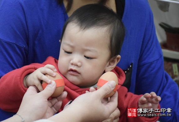 今天:2016年03月24日 天氣:晴 剃頭小組:小鈺&小欣 今天是要幫可愛的洪寶寶剃頭的好日子唷!! 以下是我們傳家手工印章特地幫寶寶準備的豐盛十禮唷! 在儀式開始前跟最愛我的家人拍來一張溫馨美滿又快樂的全家福 為洪寶寶準備煮熟的圓的雞蛋兩顆。 煮熟雞蛋2個「代表的含意:寶寶生臉蛋英俊、女生臉蛋美麗漂亮」。 讓寶寶長大是個漂亮迷人的小美人喔! 為洪寶寶準備煮熟的圓的鴨蛋兩顆。 煮熟鴨蛋2個 「代表的含意:嬰兒的身形跟鴨蛋的形狀一樣、身材健美」。 讓寶寶長大頭好壯壯,身材一級棒! 為洪寶寶準備的圓的石頭1個。 石頭「代表的含意:頭殼堅硬跟石頭一樣、身體硬朗、有膽量、勇敢」 讓寶寶長大有膽量有膽識,要做大事唷! 為洪寶寶準備一碗滿滿的米。 米。「代表的含意:一生有飯吃,豐衣足食,不愁吃穿」 讓寶寶長大都不愁吃穿唷! ~ 為洪寶寶準備一大碗桂圓。 桂圓「代表的含意:桂圓的台語發音,跟「貴人」一樣,象徵孩子有貴人相助」 讓寶寶身邊都環繞著貴人呦~~ 為洪寶寶準備一顆橘子。 橘子「代表的含意:大吉大利」 讓寶寶大吉大利~事事都順心唷! 為洪寶寶準備一顆蘋果。 蘋果「代表的含意:平平安安」 讓寶寶健健康康平安長大唷! 為洪寶寶準備的韭菜一把。 韭菜一小把。「代表的含意:長壽、長久、健康吃120歲」。 讓寶寶長命百歲唷! 為洪寶寶準備的芹菜一把。 芹菜一小把。「代表的含意:勤勞、積極、努力向上」。 寶寶長大要幫爸爸媽媽分擔經濟,分擔家計喔!! 蔥:象徵「孩子聰明會念書」。 爸爸媽媽我是一個聰明的小孩以後考試都100分喔~~ 為洪寶寶準備的大蘿蔔。 蘿蔔「代表的含意:蘿蔔就是好彩頭,象徵孩子一生好運源源不絕」 讓寶寶一輩子都可以好運滿滿喔! 鳳梨「代表的含意:鳳梨就是旺旺來,象徵孩子一生好運旺旺來」 讓寶寶一輩子都可以一路旺到底喔! 為洪寶寶準備的1000元大鈔,五帝錢和紅包袋。 紅包袋裡面裝千元大鈔:象徵「孩子能賺大錢」, 五帝錢:象徵「代表盛世吉祥和富貴」。 爸爸媽媽我長大一定會賺很多很多的錢錢讓你們享福喔! 洪寶寶要開始剃頭囉, 剃頭象徵今天從頭開始、圓圓滿滿喔。 阿姨幫我剃頭就像按摩一樣又涼又舒服ㄟ 洪寶寶滿月剃髮儀式完成囉~ 傳家手工印章祝福洪寶寶平安健康、聰明長大! 也祝福洪寶寶全家平安健康喜樂唷~ 還有許多全家福和剃髮花絮照片,就交由爸爸媽媽自己收藏和分享囉, 傳家不會公開寶寶的名字和資料,大家就看到這邊就好囉! 以上照片由洪寶寶家長同意公開使用,版權所有。 歡迎爸爸媽媽來電預約寶寶剃髮服務 (包含專業拍照整個過程), 傳家會用心為您的孩子服務和祝福。 免費到府嬰兒胎毛理髮:製作臍帶印章、胎毛筆、嬰兒三寶。 歡迎家長來電預約。 台北店:新北市永和區永貞路129號。聯絡電話:02-2922-6422。 (服務台北、新北、基隆、桃園、宜蘭等地區) 新竹店:新竹市經國路三段71號。聯絡電話:03-530-4066。 (服務新竹、苗栗、新竹科學園區、苗栗科學園區等五大科學園區) 台中店:台中市北區忠明路502-5號。聯絡電話:04-2202-3030。 (服務台中以南、彰化、南投、雲洪、嘉義、台南、高雄、屏東等地區)
