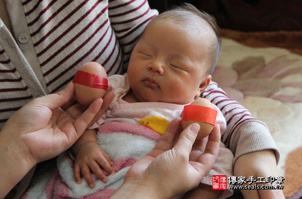 煮熟雞蛋2個「代表的含意:寶寶生臉蛋英俊、女生臉蛋美麗漂亮」。