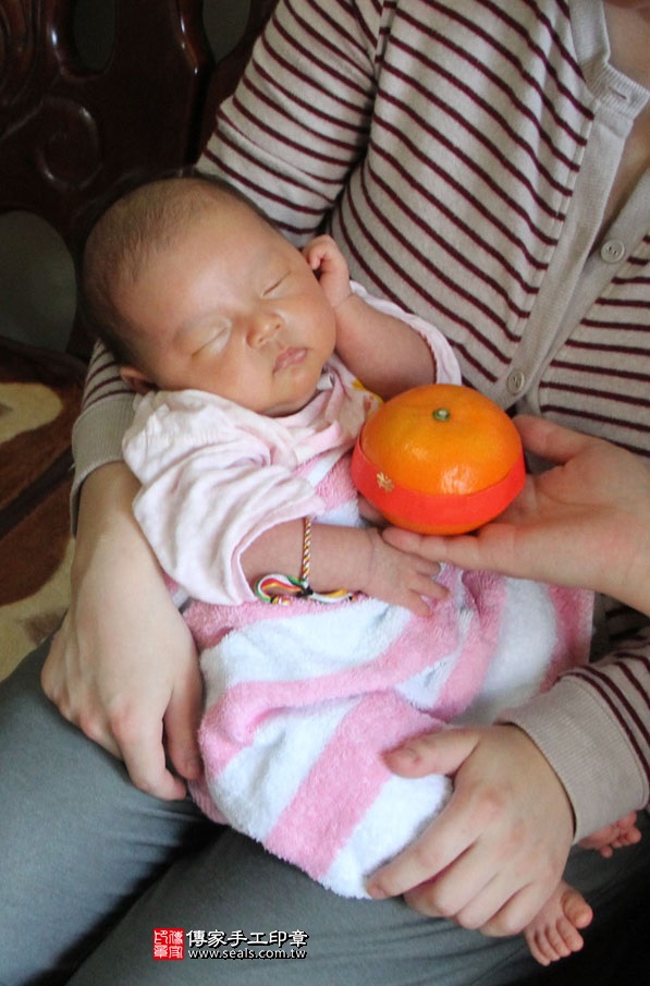 為莊寶寶準備一顆橘子。 橘子「代表的含意:大吉大利」