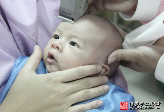 今天:2016年的05月14日 天氣:晴 剃頭小組:小玉&古爸 ︿︿ 為陳寶寶準備煮熟的圓的雞蛋兩顆。 煮熟雞蛋2個「代表的含意:寶寶生臉蛋英俊、女生臉蛋美麗漂亮」。 讓寶寶長大是個英俊迷人的型男帥哥唷! 為陳寶寶準備煮熟的圓的鴨蛋兩顆。 煮熟鴨蛋2個 「代表的含意:嬰兒的身形跟鴨蛋的形狀一樣、身材健美」。 讓寶寶長大頭好壯壯,健康長大! 為陳寶寶準備的圓的石頭1個。 石頭「代表的含意:頭殼堅硬跟石頭一樣、身體硬朗、有膽量、勇敢」 為陳寶寶準備一碗滿滿的米。 米。「代表的含意:一生有飯吃,豐衣足食,不愁吃穿」 讓寶寶長大都不愁吃穿唷! ~ 為陳寶寶準備一大碗桂圓。 蘋果「代表的含意:平平安安」 讓寶寶健健康康平安長大唷! 為陳寶寶準備一顆橘子。 橘子「代表的含意:大吉大利」 為陳寶寶準備漂亮的蔥一把。 蔥:象徵「孩子聰明會念書」。 爸爸媽媽我是一個聰明的小孩以後考試都100分喔~~ 為陳寶寶準備的大蘿蔔。 鳳梨「代表的含意:鳳梨就是旺旺來,象徵孩子一生好運旺旺來」 讓寶寶一輩子都可以一路旺到底喔! 為陳寶寶準備的1000元大鈔,五帝錢和紅包袋。 紅包袋裡面裝千元大鈔:象徵「孩子能賺大錢」, 五帝錢:象徵「代表盛世吉祥和富貴」。 爸爸媽媽我長大一定會賺很多很多的錢錢讓你們享福喔! 陳寶寶要開始剃頭囉, 剃頭象徵今天從頭開始、圓圓滿滿喔。 寶寶好乖好勇敢喔阿姨剃頭像按摩一樣好涼好舒服 阿姨幫你剃眉毛幫你把霉運通通都趕跑~ 傳家手工印章祝福陳寶寶平安健康、聰明長大! 也祝福陳寶寶全家平安健康喜樂唷~ 還有許多全家福和剃髮花絮照片,就交由爸爸媽媽自己收藏和分享囉, 傳家不會公開寶寶的名字和資料,大家就看到這邊就好囉! 以上照片由陳寶寶家長同意公開使用,版權所有。 歡迎爸爸媽媽來電預約寶寶剃髮服務 (包含專業拍照整個過程), 傳家會用心為您的孩子服務和祝福。 免費到府嬰兒胎毛理髮:製作臍帶印章、胎毛筆、嬰兒三寶。 歡迎家長來電預約。 台北店:新北市永和區永貞路129號。聯絡電話:02-2922-6422。 (服務台北、新北、基隆、桃園、宜蘭等地區) 新竹店:新竹市經國路三段71號。聯絡電話:03-530-4066。 (服務新竹、苗栗、新竹科學園區、苗栗科學園區等五大科學園區) 台中店:台中市北區忠明路502-5號。聯絡電話:04-2202-3030。 (服務台中以南、彰化、南投、雲林、嘉義、台南、高雄、屏東等地區)