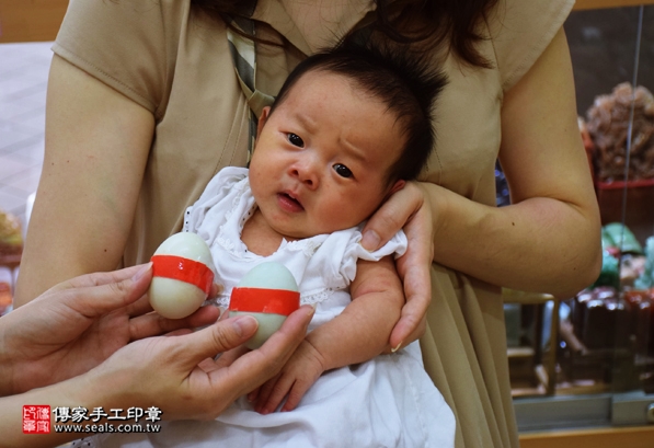 煮熟雞蛋2個「代表的含意:陳寶寶生臉蛋英俊、女生臉蛋美麗漂亮」。