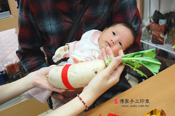 蘿蔔「代表的含意:蘿蔔就是好彩頭,象徵孩子一生好運源源不絕」