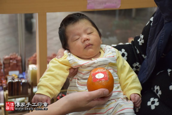 為李寶寶準備一顆橘子。 橘子「代表的含意:大吉大利」