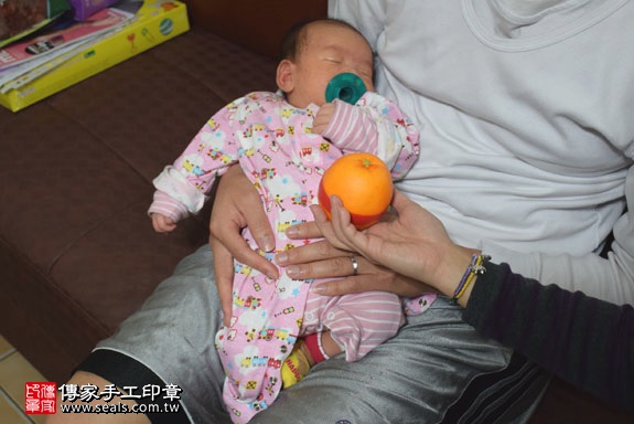 為蔡寶寶準備一顆橘子。 橘子「代表的含意:大吉大利」