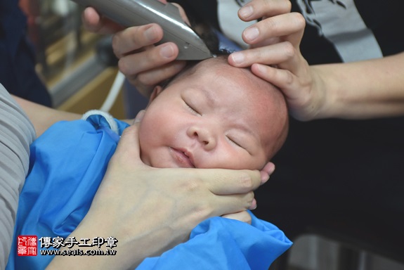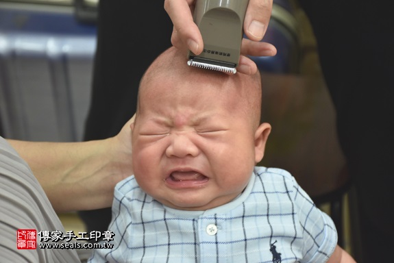 今天是要幫舉行人生中的第一次剃頭儀式唷!