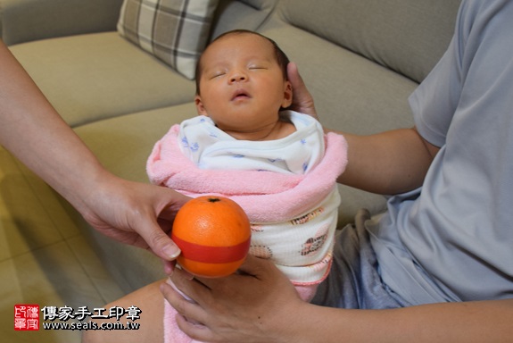 為梁寶寶準備一顆橘子。 橘子「代表的含意:大吉大利」