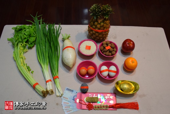 雞蛋2個「代表的含意:林寶寶生臉蛋英俊、女生臉蛋美麗漂亮」。