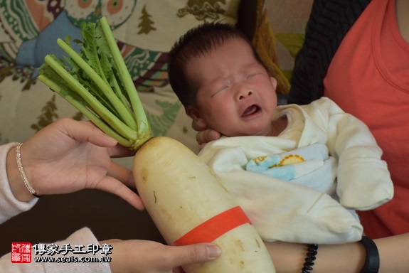 蘿蔔「代表的含意:蘿蔔就是好彩頭,象徵孩子一生好運源源不絕」