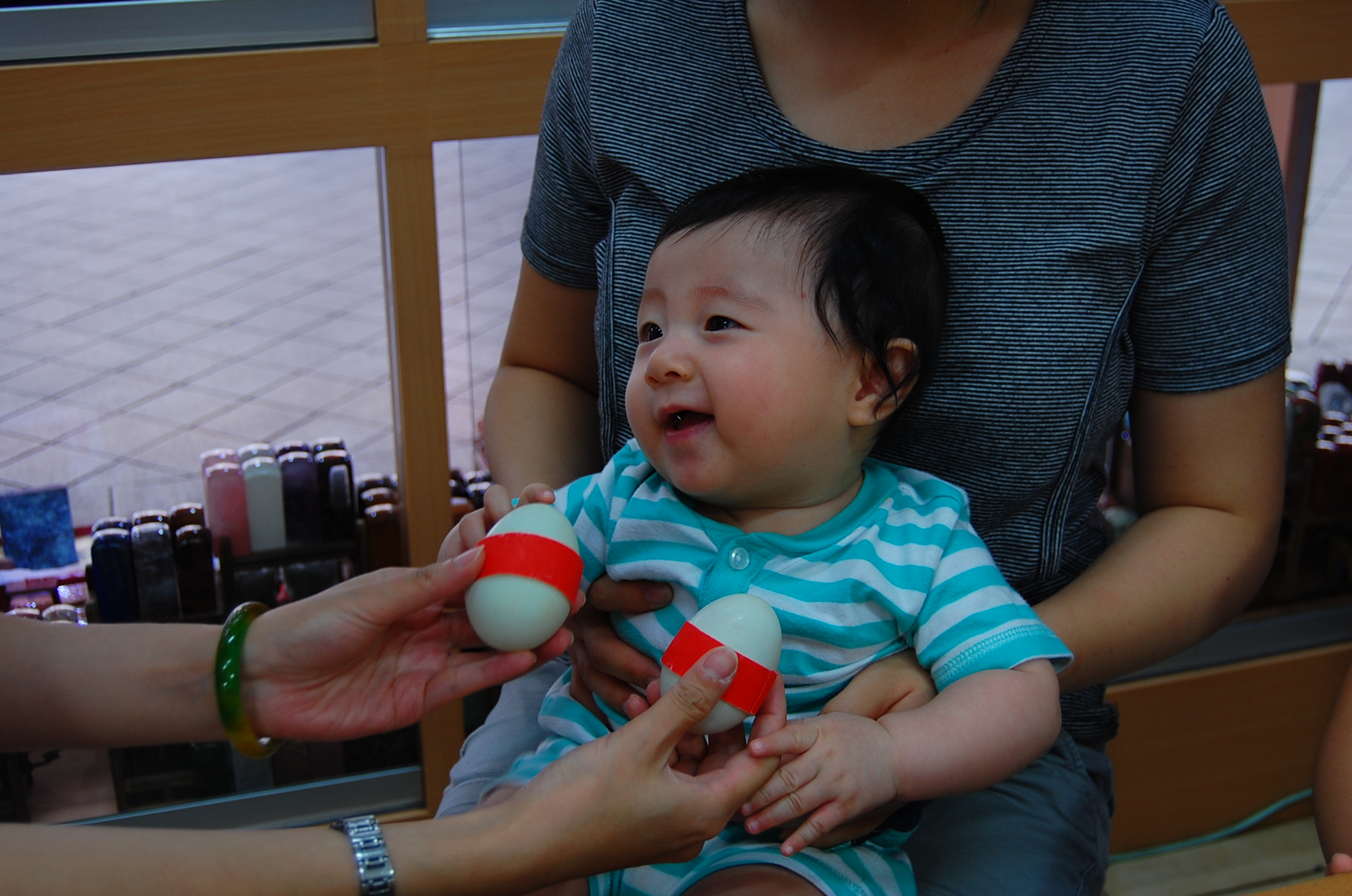 寶寶真聰明一直抱著元寶不放喔