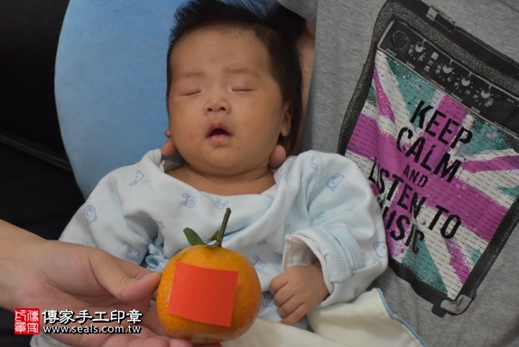 為林寶寶準備一顆橘子。 橘子「代表的含意:大吉大利」