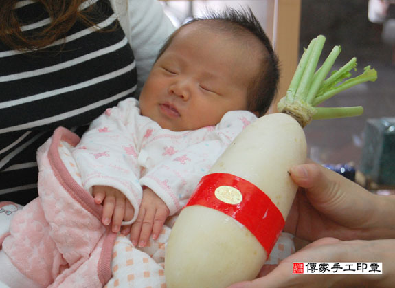 蘿蔔「代表的含意:蘿蔔就是好彩頭,象徵孩子一生好運源源不絕」