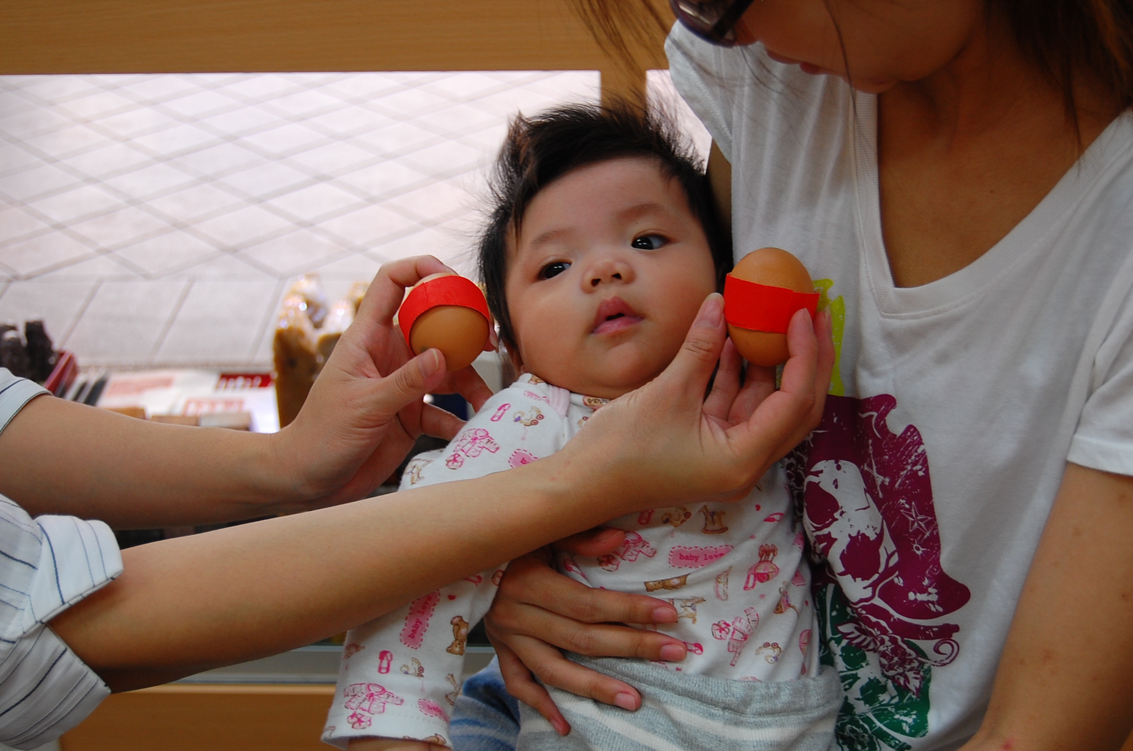 為許寶寶準備煮熟的圓的雞蛋兩顆。