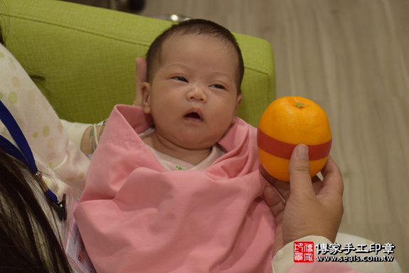 為陳寶寶準備一顆橘子。 橘子「代表的含意:大吉大利」