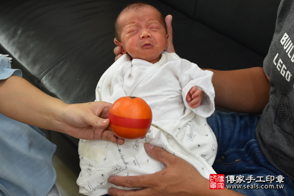 為林寶寶準備一顆橘子。 橘子「代表的含意:大吉大利」