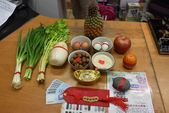 韭菜一小把。「代表的含意:長壽、長久、健康吃120歲」。