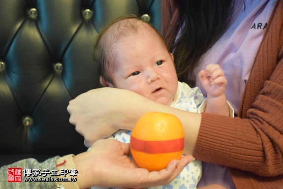 為陳寶寶準備一顆橘子。 橘子「代表的含意:大吉大利」