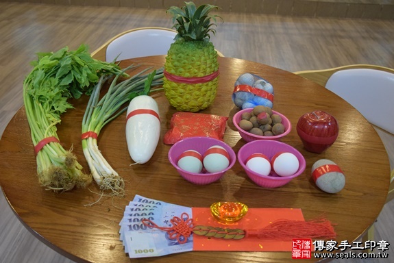 鴨蛋2個 「代表的含意:嬰兒的身形跟鴨蛋的形狀一樣、身材健美」。