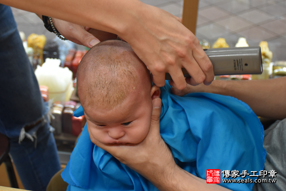 練寶寶要開始剃頭囉, 剃頭象徵今天從頭開始、圓圓滿滿喔~