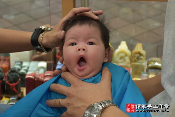 高寶寶要開始剃頭囉, 剃頭象徵今天從頭開始、圓圓滿滿喔~