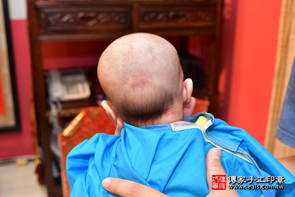 劉寶寶要開始剃頭囉, 剃頭象徵今天從頭開始、圓圓滿滿喔~