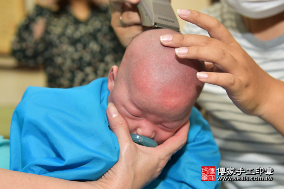 1.嬰兒滿月剃頭象徵從頭開始,迎接新生到來。剃頭的頭髮可以做胎毛筆;臍帶可以做肚臍印章。