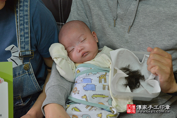 1.嬰兒滿月剃頭象徵從頭開始,迎接新生到來。剃頭的頭髮可以做胎毛筆;臍帶可以做肚臍印章。