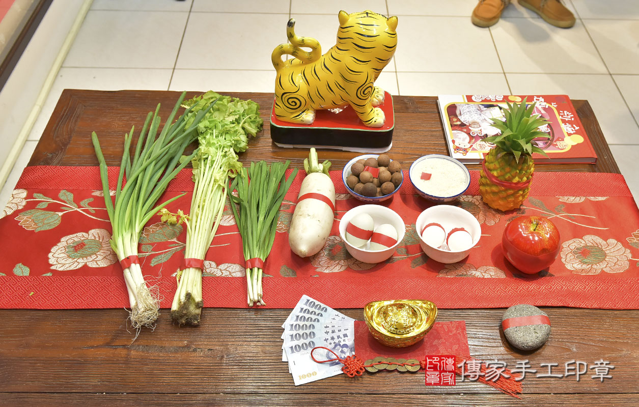 以下是我們傳家手工印章幫吳寶寶準備的豐盛十禮唷!