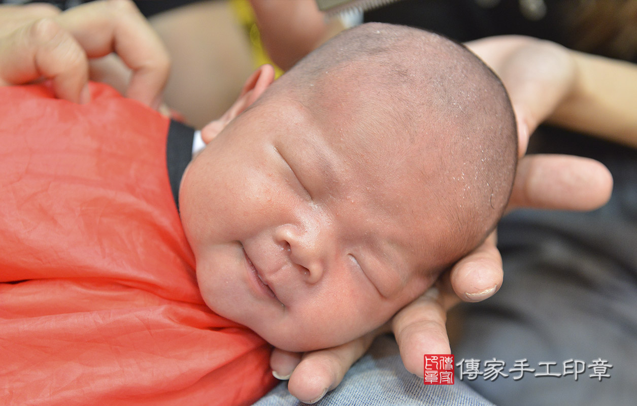 傳家手工印章也很開心能為劉寶寶剃頭,