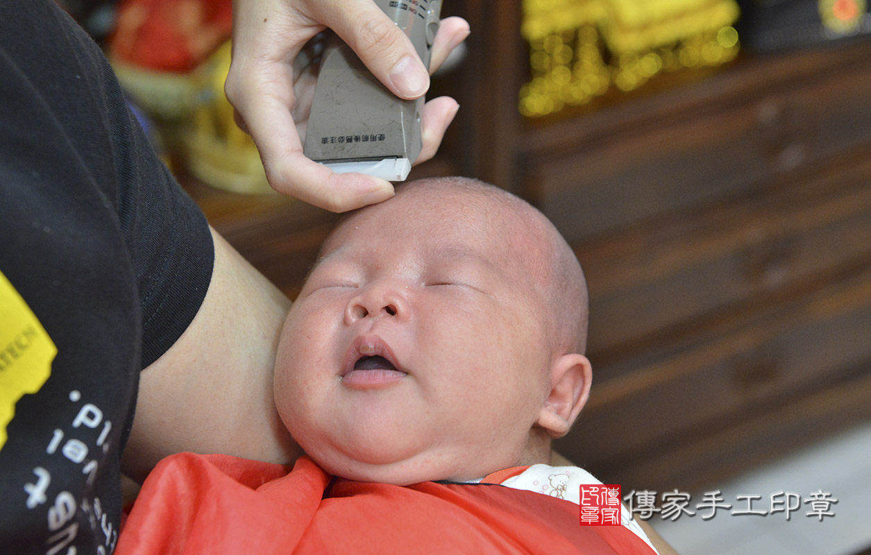 劉寶寶要開始剃頭囉, 剃頭象徵今天從頭開始、圓圓滿滿喔~