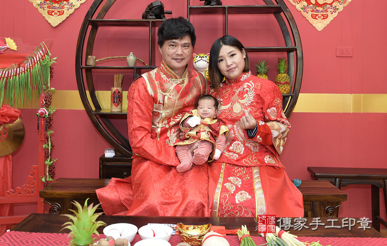 寶寶滿月剃髮儀式完成囉~拍一張全家福記錄這難忘的時刻吧^^